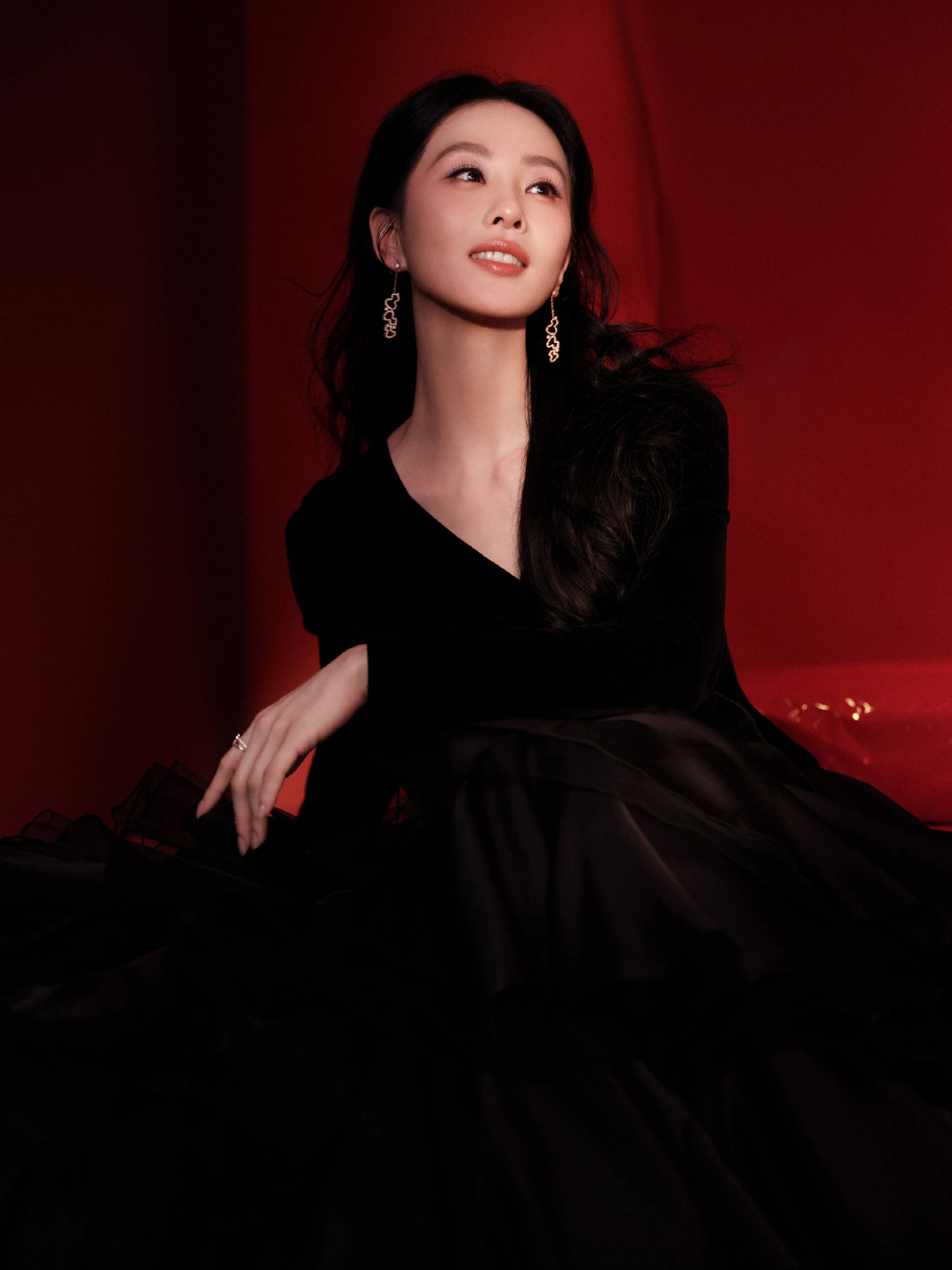 刘诗诗穿黑色V领礼裙美丽动人。