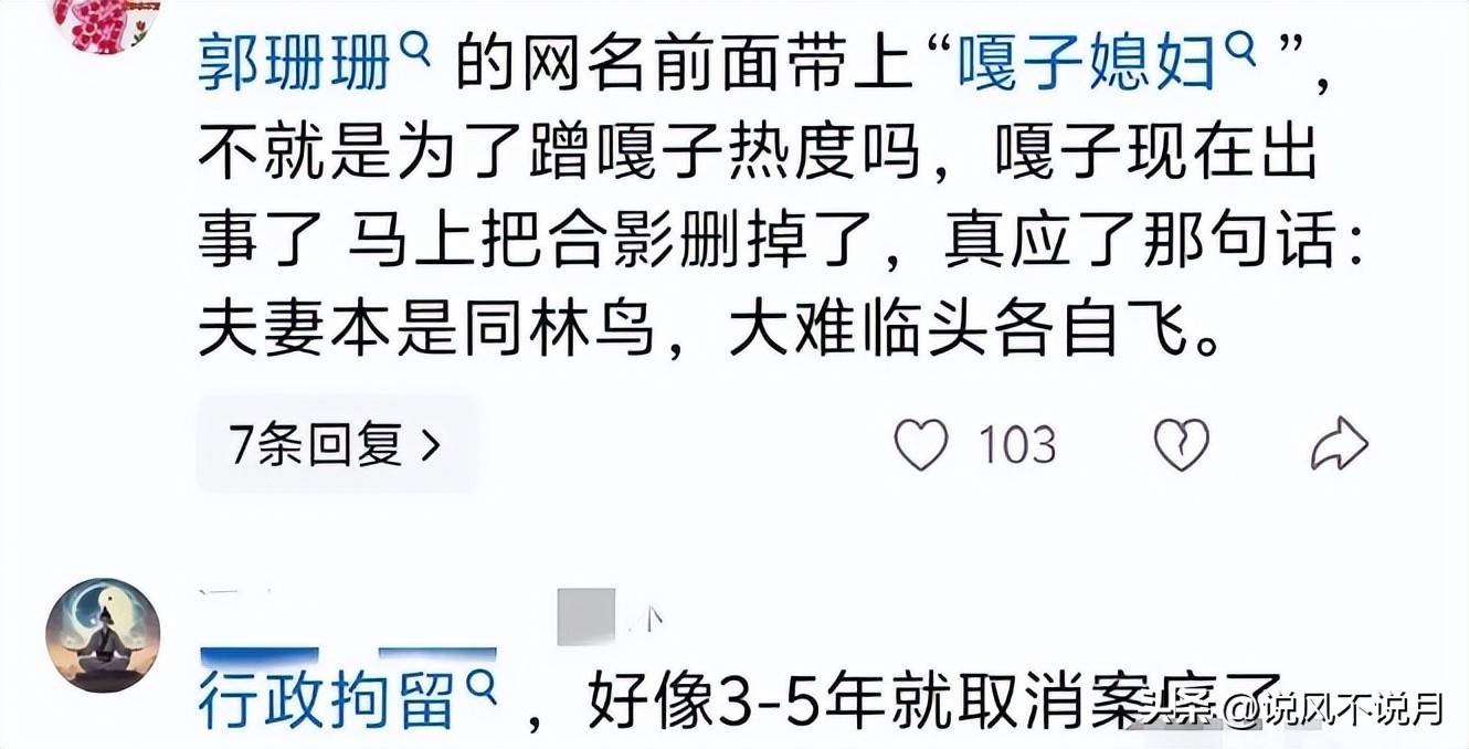 但这次嘎子被捕之后,珊珊竟第一时间删除了自己社交平台上和嘎子的所有合照。