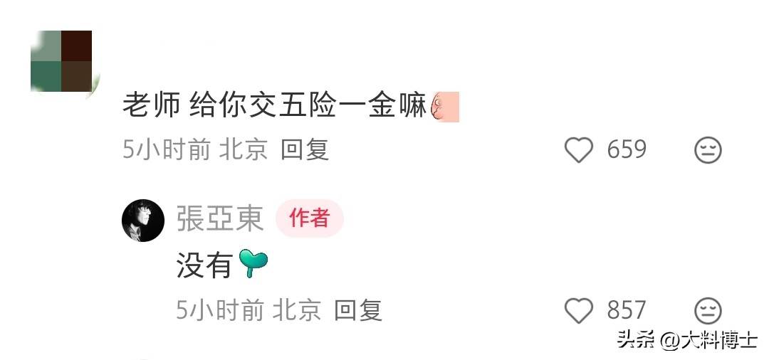 有网友在评论区留言问张亚东:老师,给你交五险一金嘛?