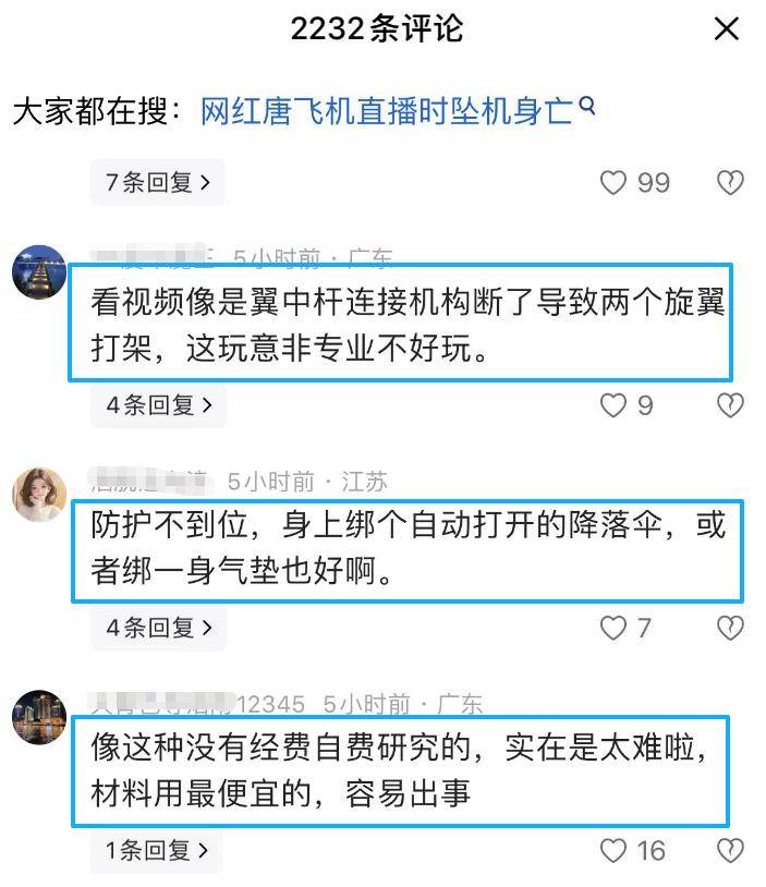 评论区有很多网友在吆喝说“支持唐飞机创新,支持他坚持梦想”。