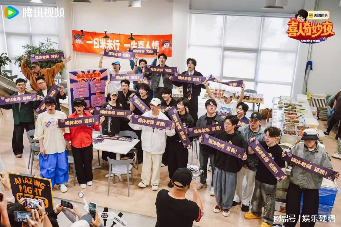 群访环节后,媒体来到米未公司进行扫楼打卡和喜人现场营业“撒饭”。《喜人奇妙夜》作为首个获得白玉兰最佳综艺奖的纯网播综艺,活动将白玉兰奖杯与团长奖杯设置为“接喜气区”,由高海宝、泰维带领大家一起“接好运”;蒋龙、张弛的吉他弹唱区更令人梦回逐梦亚军的经典名场面;某某某以书法形式为大家送上中秋祝福;同时,张呈、雷淞然通过油菜花变装合拍回应玩梗;蒋易、孙天宇的高歌猛唱区,以及多位喜人上阵的食堂“撒饭”服务,让所有到场来宾都沉浸式打卡“喜人宇宙”。
