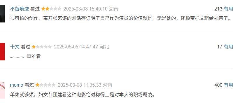 反观刘浩存的电影运都不咋样,不是选剧本有问题,就是演技被嘲全片最拉垮。