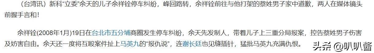 心声怨恨的余天借此事煽动台湾民众对大陆的敌意。