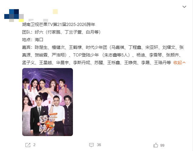 这种 “自产自销” 的流量模式,比外请嘉宾更具黏性。时代少年团在 2024-2025 跨年的 “楼内合作舞台” 播放量破亿,证明其与芒果舞台的适配度;王鹤棣去年跨年的《危险派对》混剪至今仍在短视频平台流传,这种 “平台造星 - 舞台回馈” 的闭环,让流量不再是转瞬即逝的热度,而是能沉淀为跨年 IP 的长期资产。正如网友所言:“芒果的顶流从不靠临时借调,而是自己养出来的‘自己人’”。