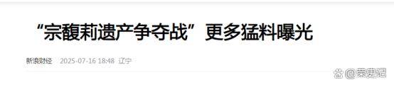 5、金融界:三名“宗氏子女”争夺娃哈哈200亿遗产,宗馥莉面临股权分割危机