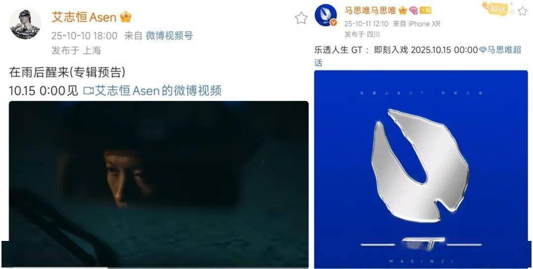 就在最近,Asen和马思唯相继预告新专辑!巧合的是,两人还不约而同地选在了同一天,10月15日!