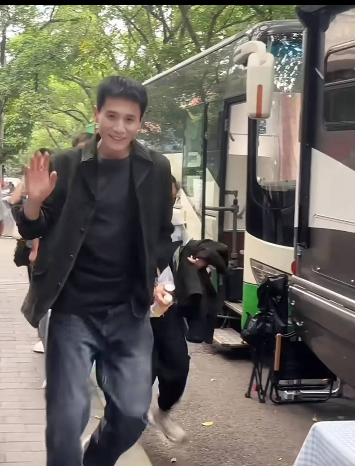 刘烨跟粉丝打招呼。