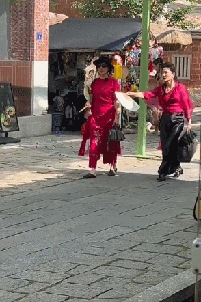 做完簪花造型后,刘嘉玲也一个人走在最前面,完全不参与大家在后面的讨论。