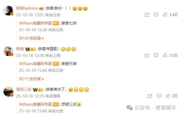 很久没有看到明星们纷纷贺喜了,2025年总算在陈伟霆评论区看到大家团建。