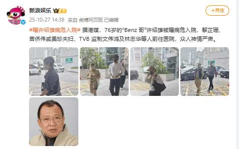 据港媒此前报道,76岁的“Benz 哥”许绍雄被曝病危入院,黎芷珊、苗侨伟戚美珍夫妇、TVB 监制文伟鸿及林志华等人前往医院,众人神情严肃。