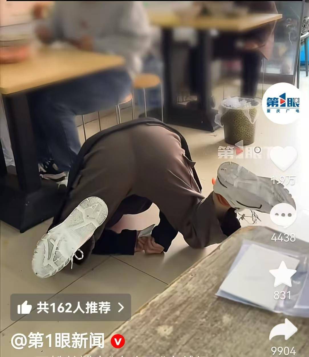 脖子还没有完全转过去,突然之间,他发现自己的手脚不听使唤了,本来在座位上坐着的他,一下子就摔了下去,直接趴在了地上。两个脚翘得很高,有一桌子高,呈跪姿。