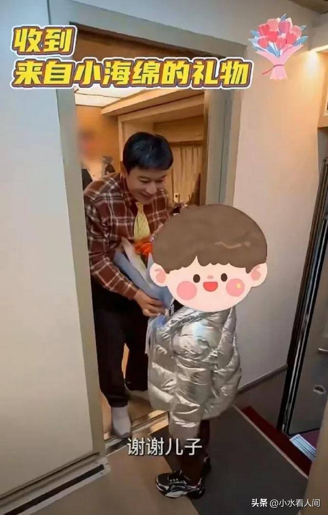 10月26日,黄晓明工作室又分享了一段温馨视频,是之前在电影拍摄期间,儿子小海绵带着鲜花来探班爸爸。