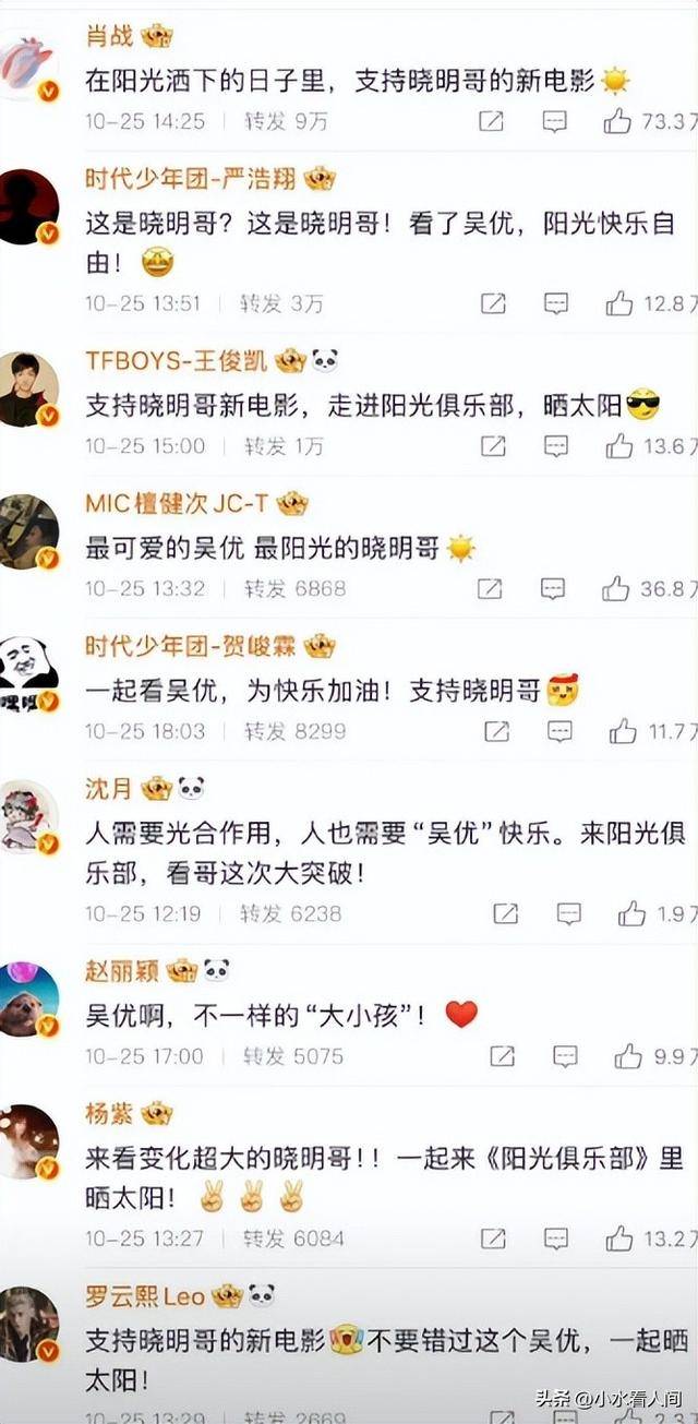 10月25日,黄晓明主演的电影《阳光俱乐部》上映。