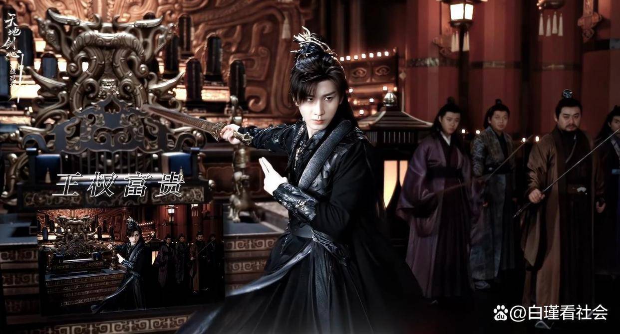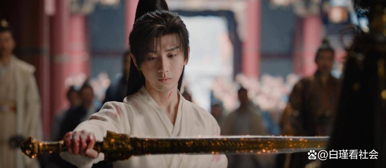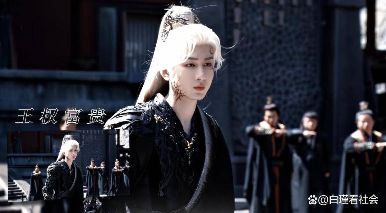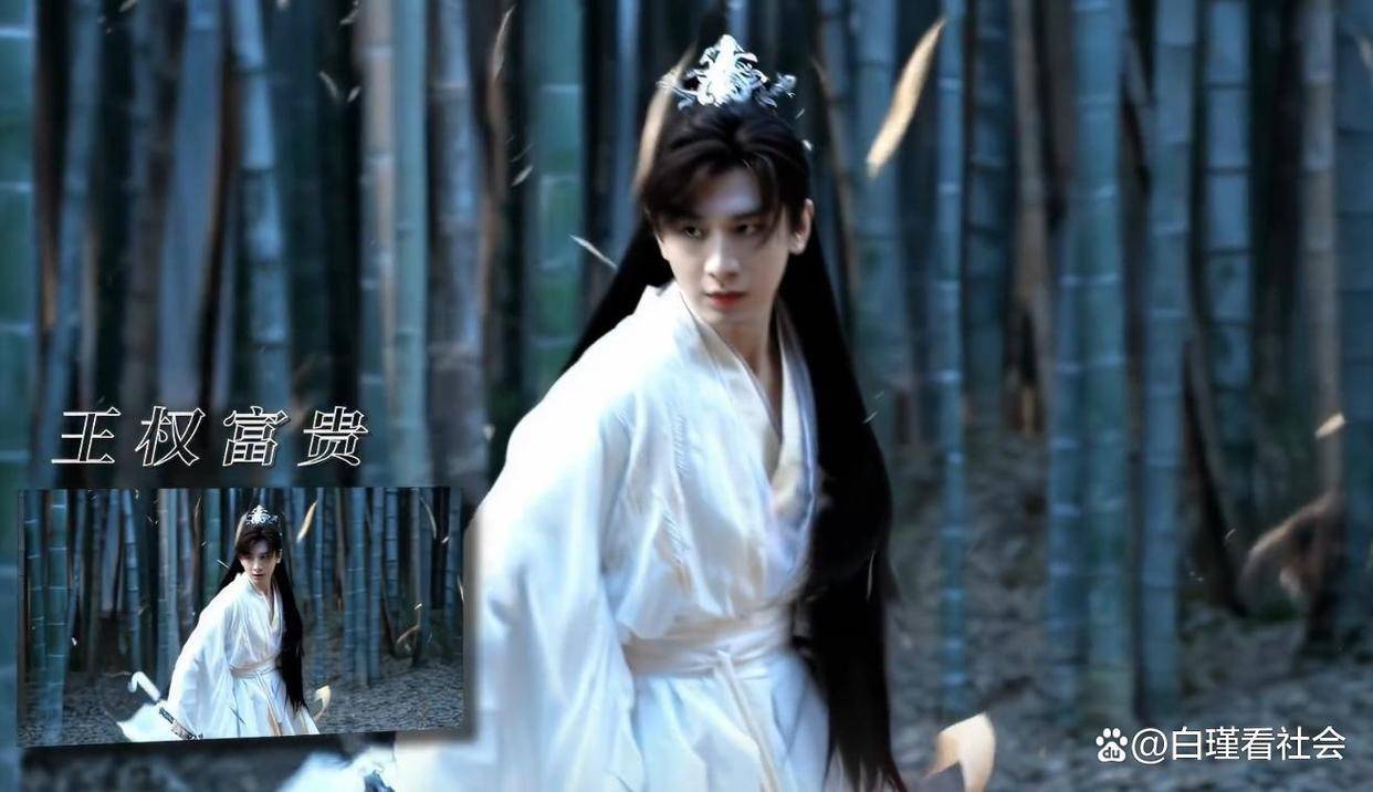 王权富贵前期穿的白色长袍,上面绣着淡淡的剑纹,领口和袖口都用银丝锁边,看着规整华贵,却也透着一股被规矩束缚的沉重感。