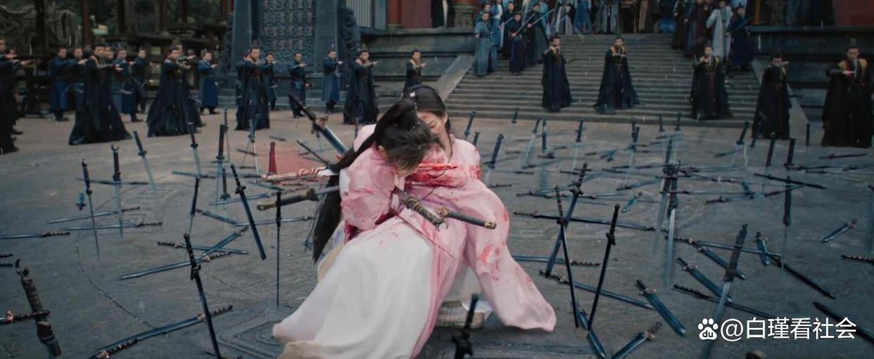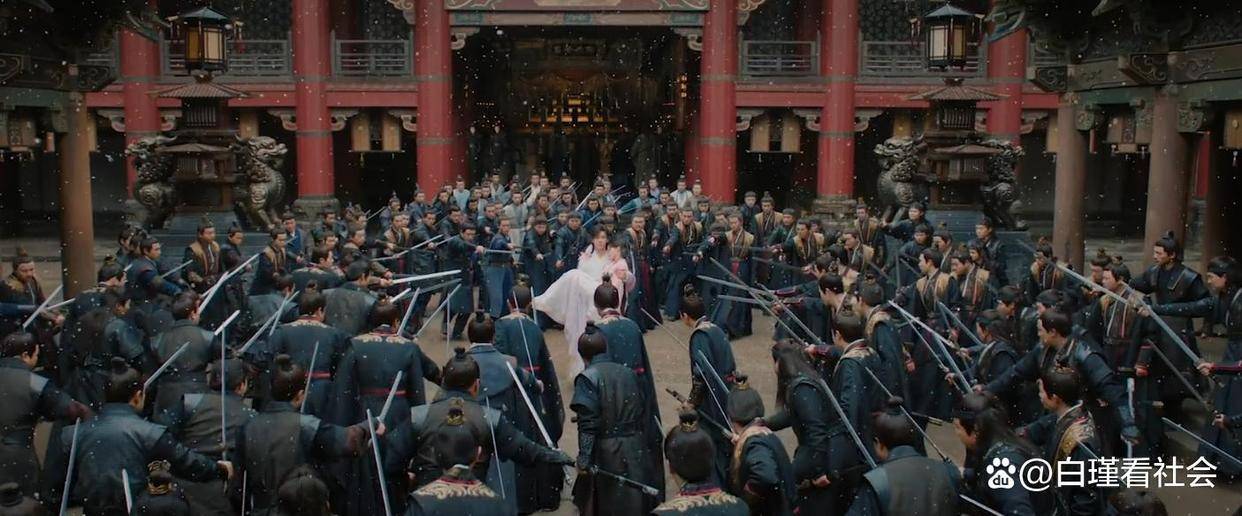 此外,该剧场景也很讲究,王权家的剑冢摆满密密麻麻的剑,光线昏暗压抑,正好对应王权富贵的处境。