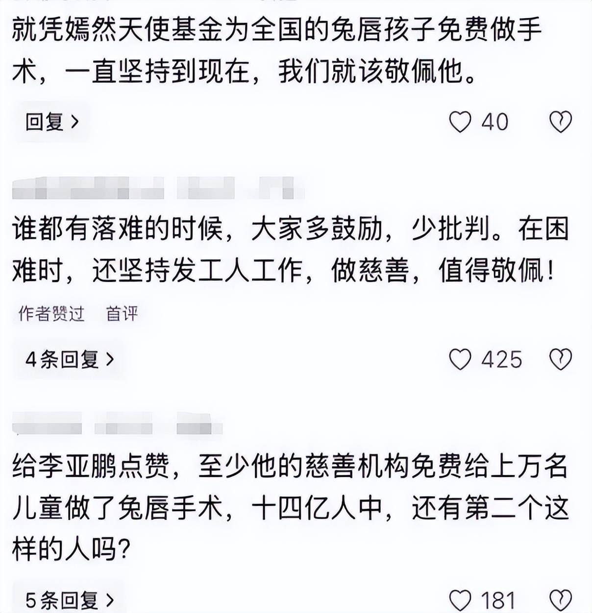 希望李亚鹏能够不忘初心,口碑、事业回温的同时,也别忘了在公益上的舍身。
