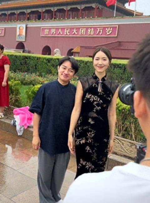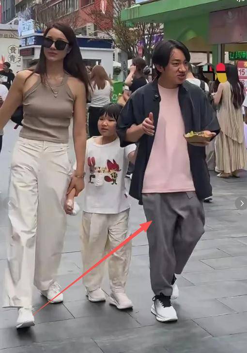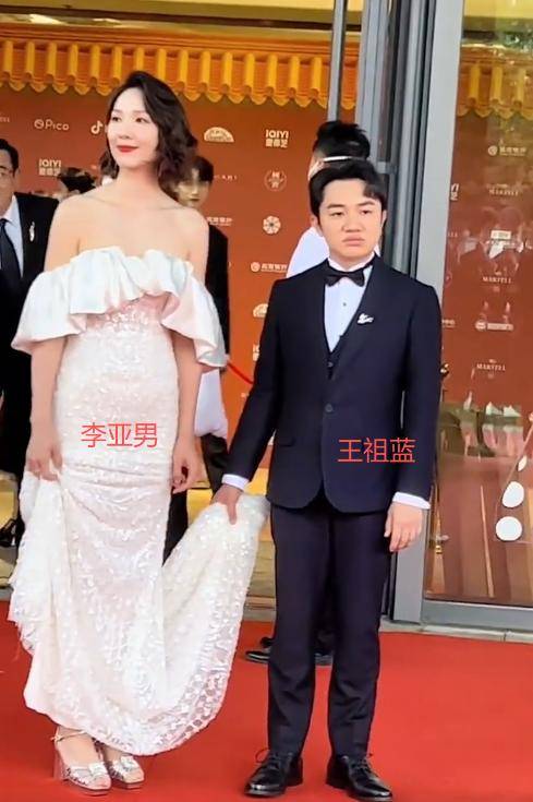去年贵阳偶遇时,李亚男穿平底鞋都比老公高半个头,网友截图发现她的裤脚短半截,调侃“这是穿了王祖蓝的裤子?”。