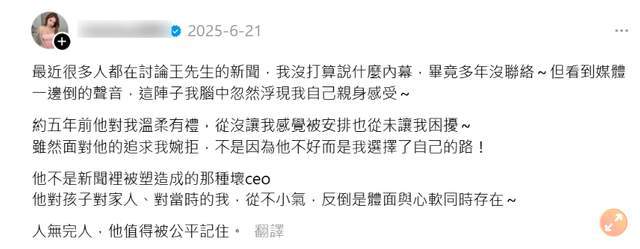 这期间有一位王姓富豪想追求她,但因为谢侑芯的心思并不在相夫教子方面,所以婉拒了对方,还曾发文回应,并亲自为对方解释。