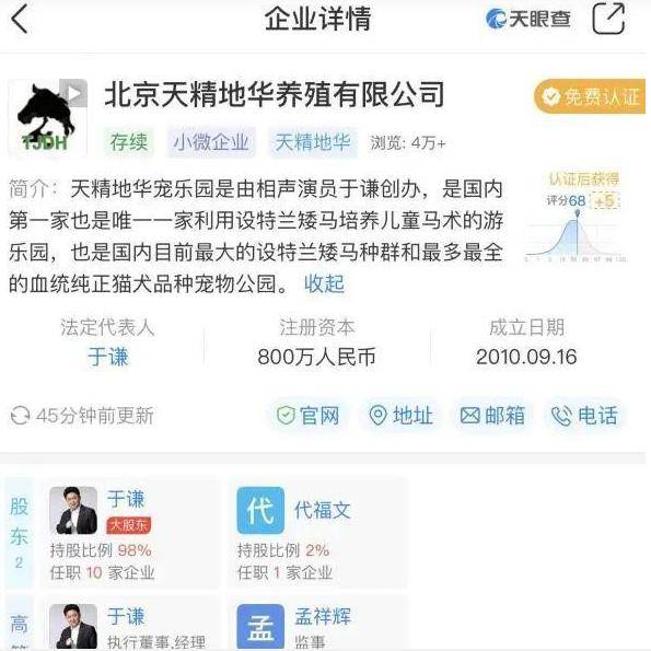 其中他持股98%的北京天精地华养殖有限公司,不仅是国内最大的矮马种群基地,还做儿童马术教育。