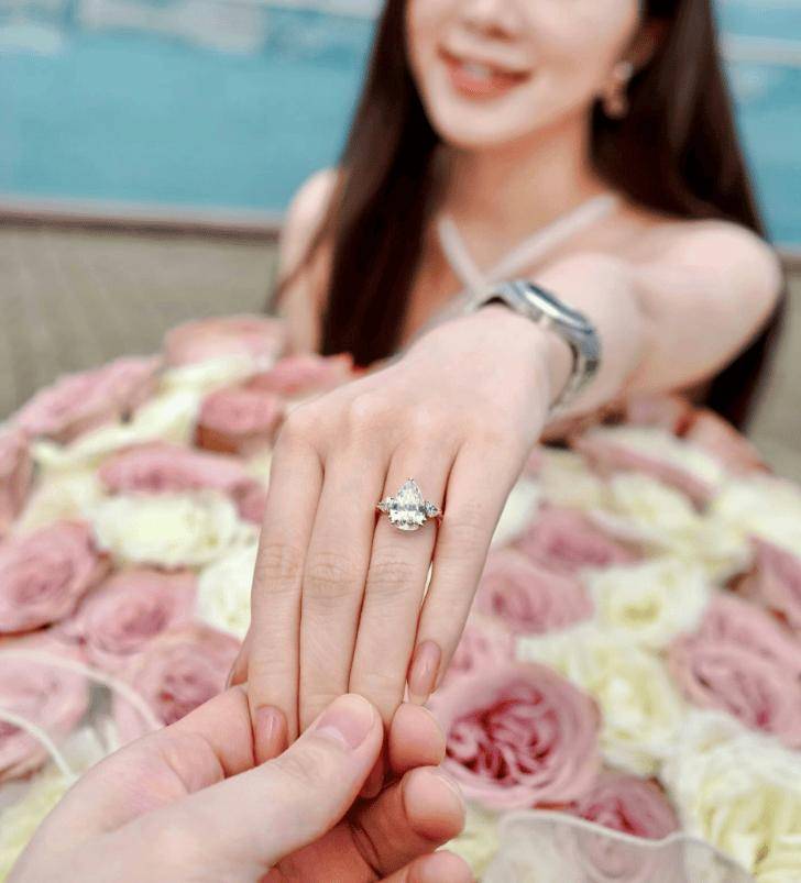 杨帆当年从内地来港读书并参选港姐,前年12月她宣布被男友Dennis求婚成功,还大晒价值过百万的3.5克拉钻戒,高调秀恩爱!去年7月两人在瑞士举行浪漫婚礼,婚后不时撒糖,令人羡慕!