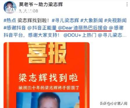 虽然没有证据显示是迪丽热巴的粉丝直接帮助找到了梁志辉,但是他们默默善良地帮助,也起到了非常重要的推动作用。