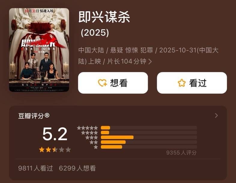 票房压力越大,投资就越谨慎。观察近期各大影业公布的片单,不仅待映项目十分有限,且储备方向高度集中——部分是IP续作,部分是喜剧、犯罪等被市场验证过的高回报类型。