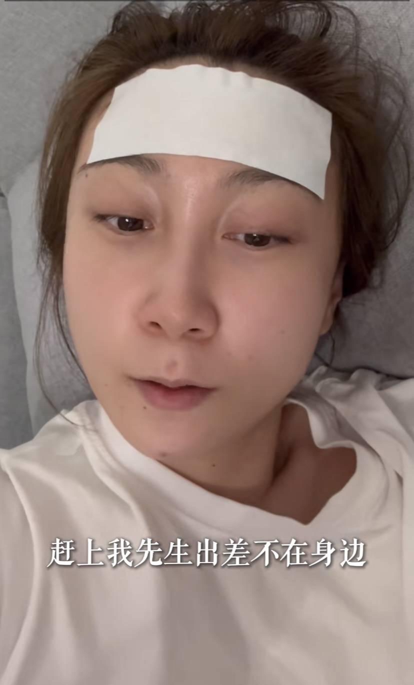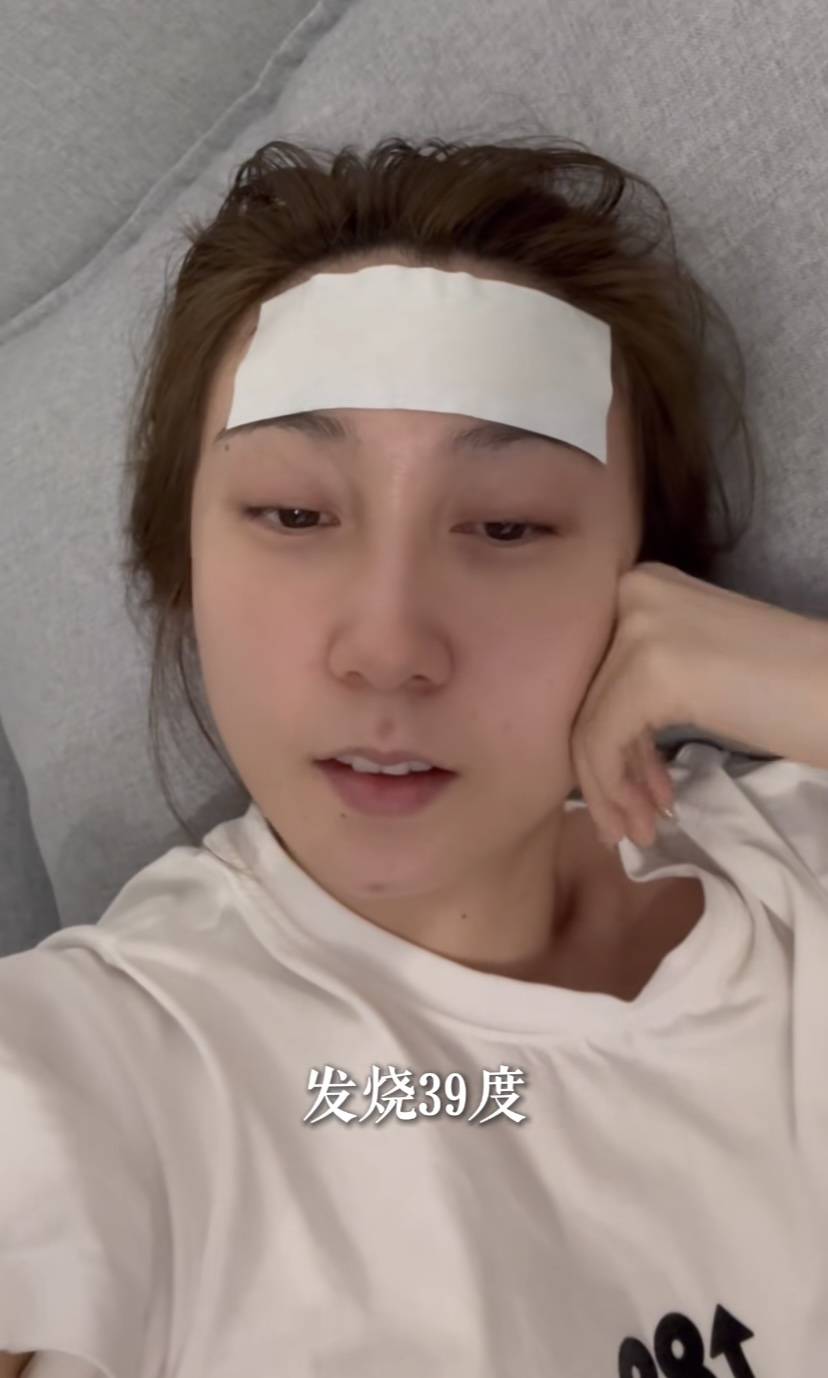 当时水亦诗已经烧到了39度,她额头上贴着退热贴,还是面色绯红。当时水亦诗的老公没在家,那个时候真的很崩溃。