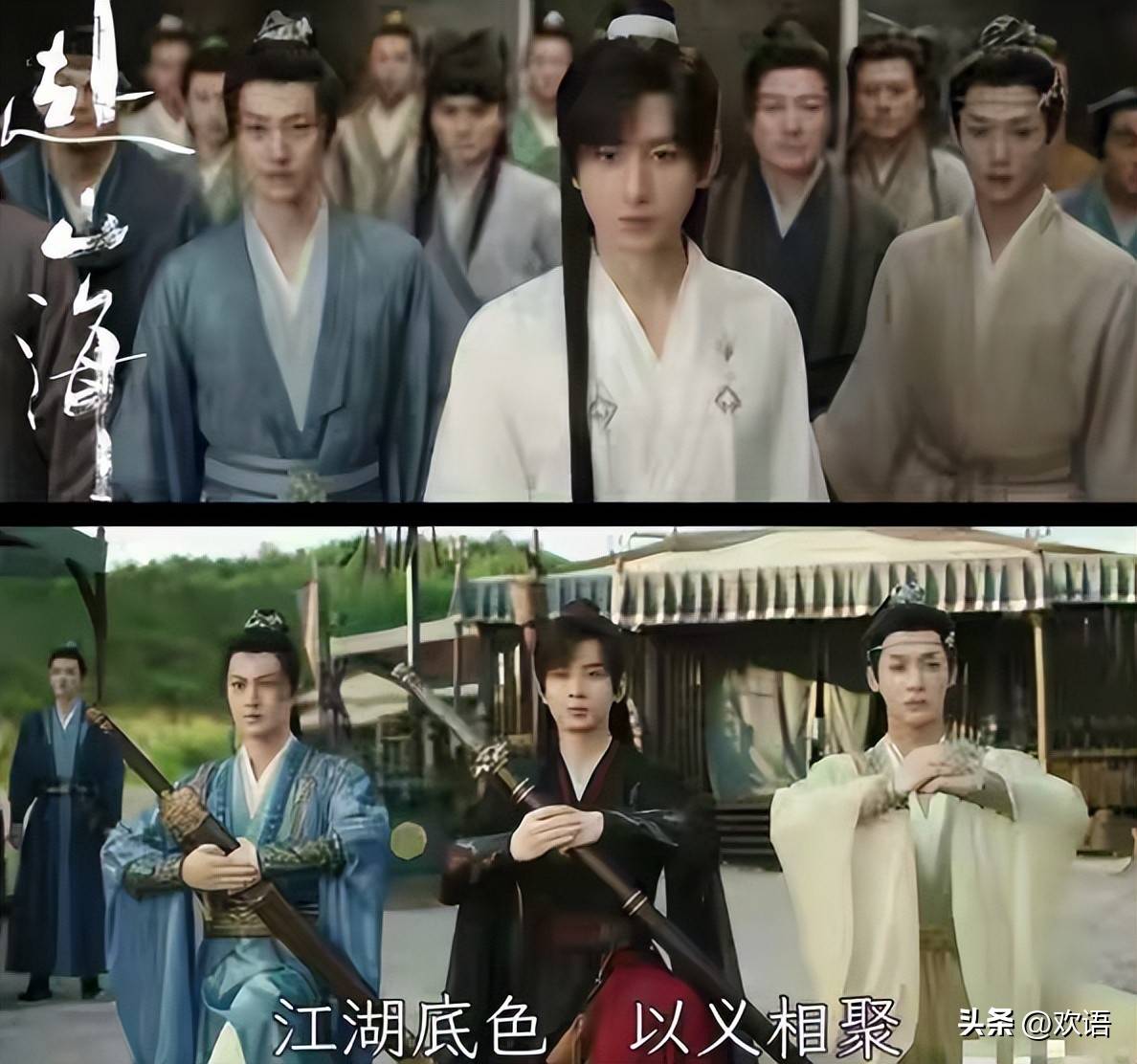 大家应该都在网上刷到过那几张图片,他在剧里演的萧秋水,正在跟一帮人进行武林对话。