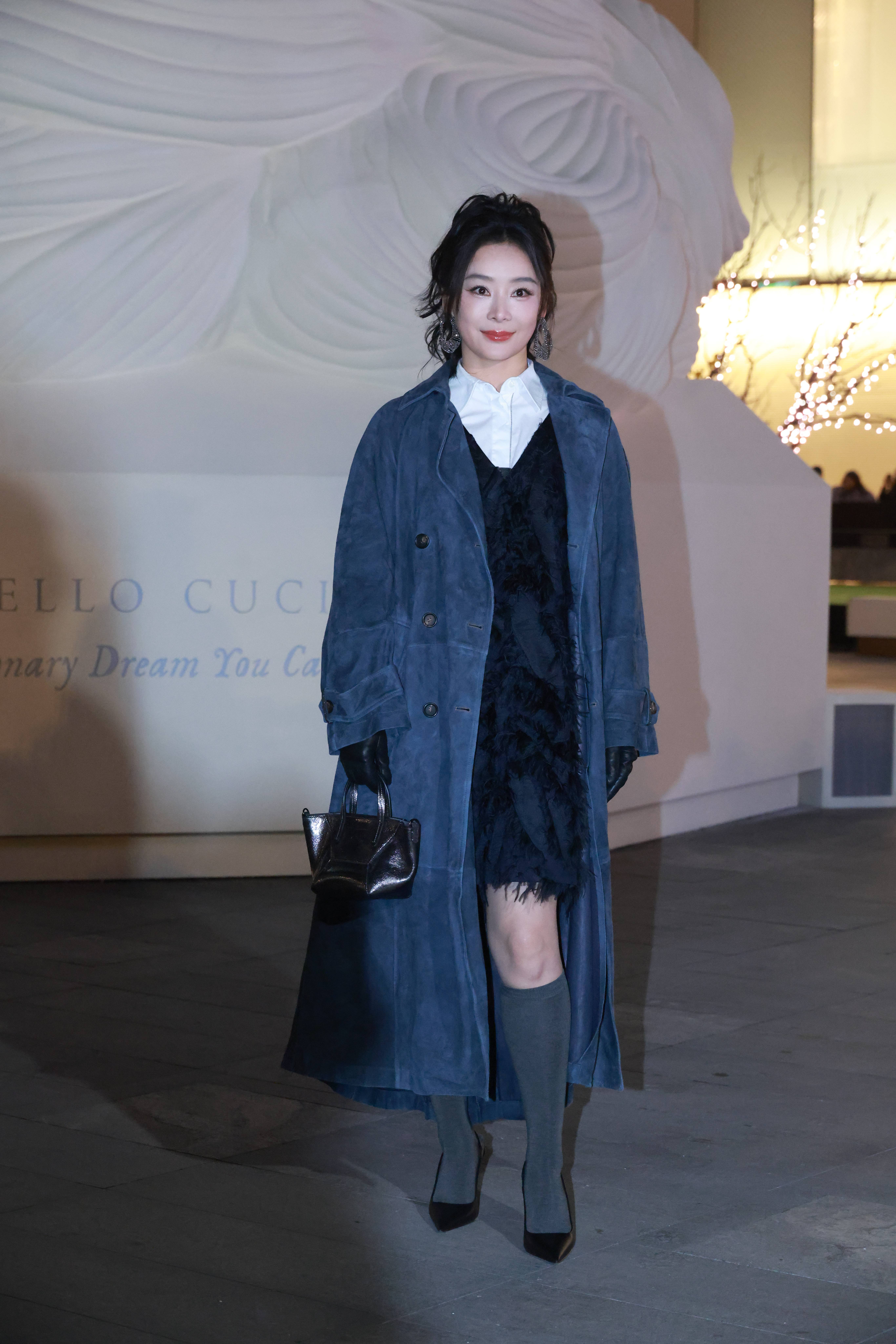 袁姗姗则是蓝色风衣造型,松弛自信。