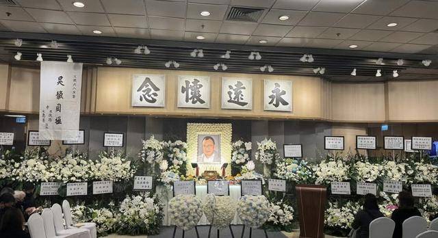 从传媒在现场拍摄的照片可以看到,大家送的花篮已经在灵堂里放不下了,直接被安排放在门口的道路两侧。