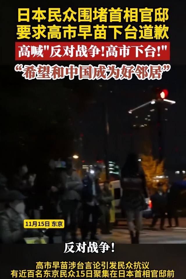 从11月15日开始,就已经有大量日本民众为反对战争而展开了对高市早苗政权的抵制活动,甚至还一度跑到东京日本首相官邸与高市早苗政权公然对峙。