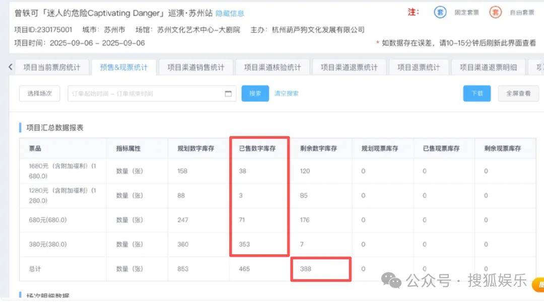 不仅票价高于同咖位歌手一倍,有一档门票只卖出个位数,未售出的门票库存甚至占了半数。