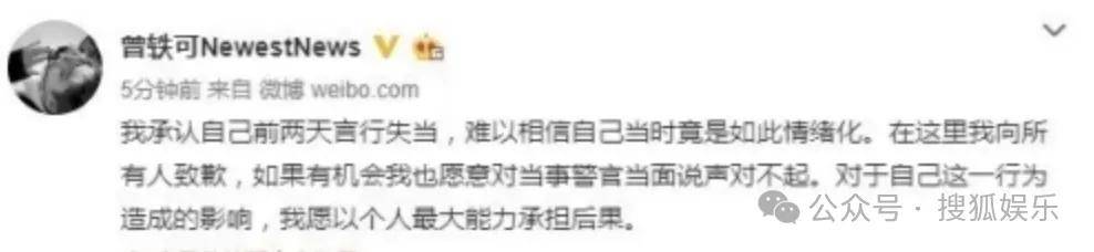 随后,吃了个大教训的曾轶可这才出来发文道歉,称自己当时太“情绪化”。