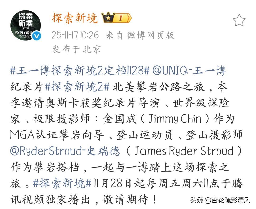 其次,王一博已经将《探索新境》打造成了个人IP。第一季的成功让观众对第二季充满期待,期望着他在探索极限挑战中展现更多的自我与突破。