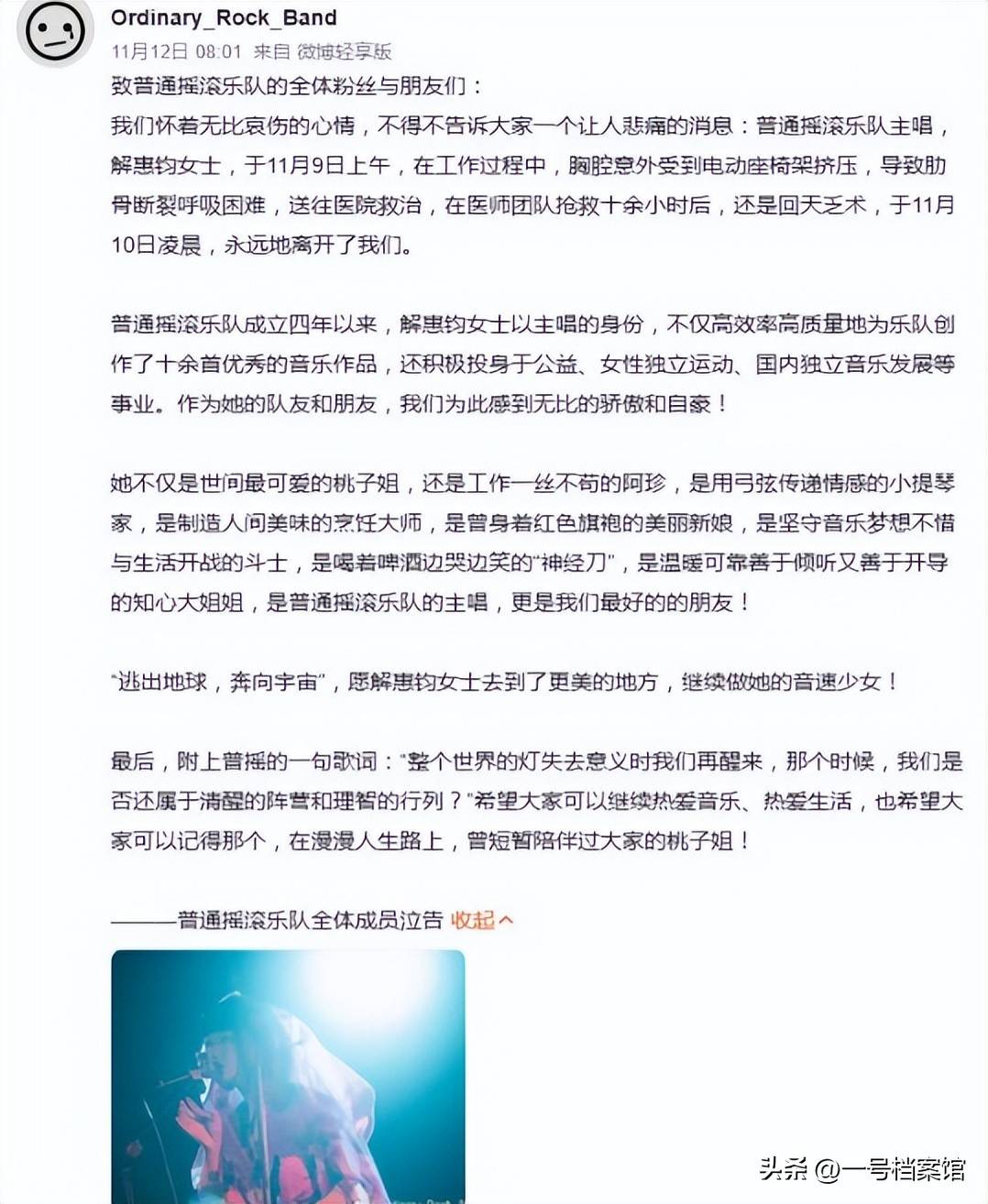 近日音乐圈传来了一个不好的消息,摇滚乐队的主唱阿珍去世了,而她的离世原因让人感慨万分,