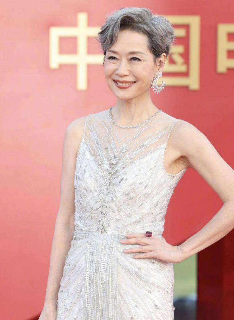 这次走红毯,叶童用一头银发配上一袭银色长裙,完美地展现出了她别样的魅力和气质。