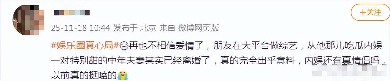 11月18日,有网友爆料“某恩爱夫妻已离婚”。