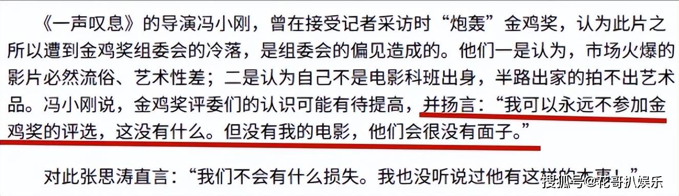 冯小刚也撕过金鸡,说评委用有色眼镜看人。