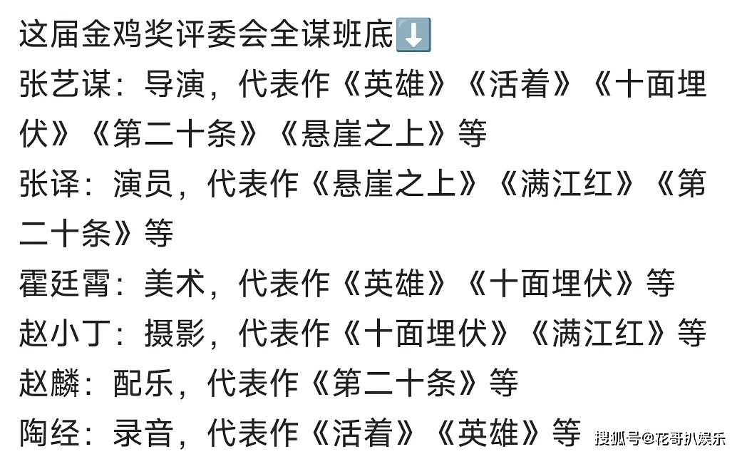 本届金鸡奖评委会堪称老谋子剧组开会,在座的评委几乎全是张艺谋的自己人。