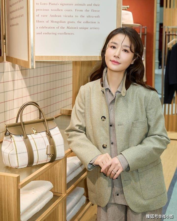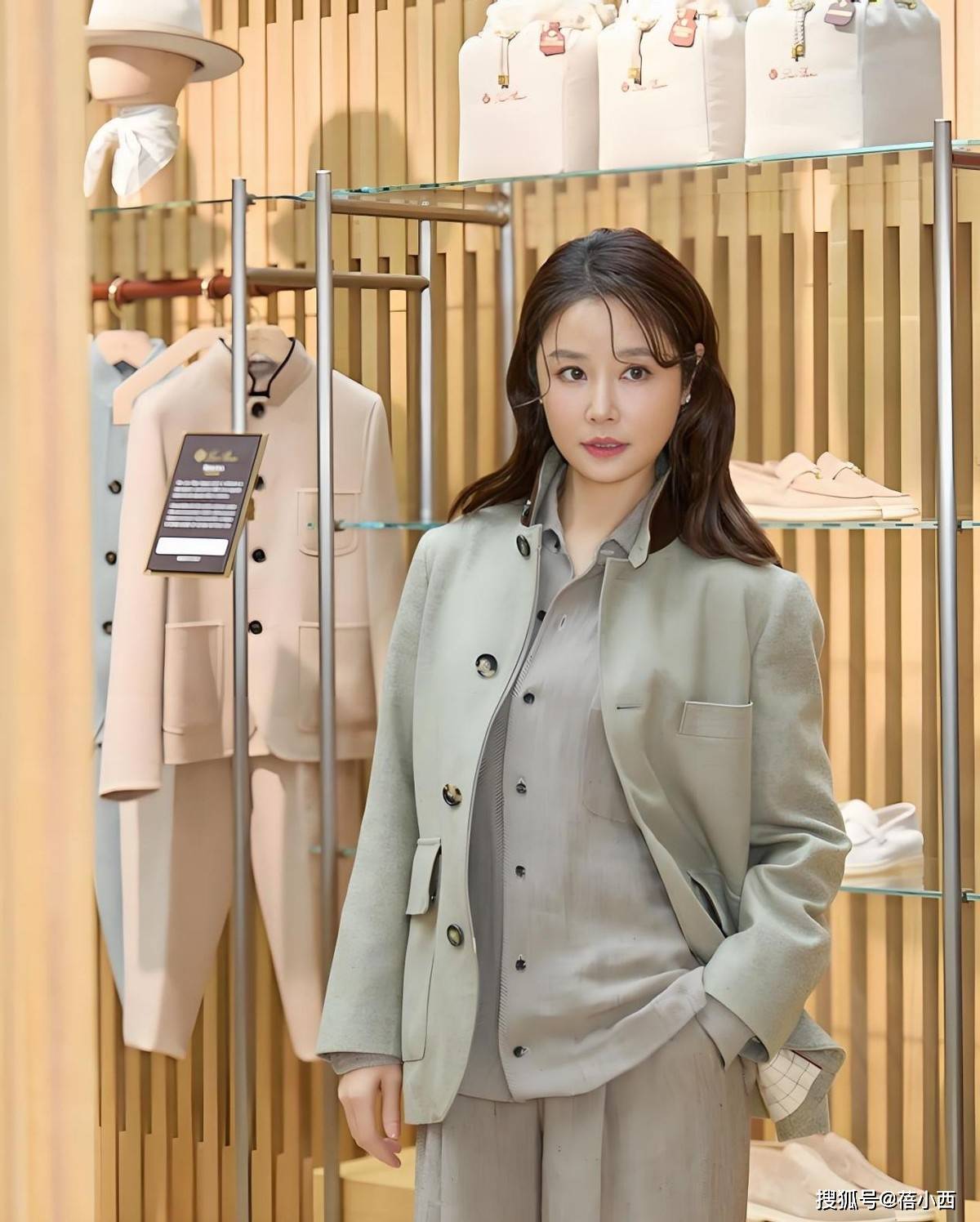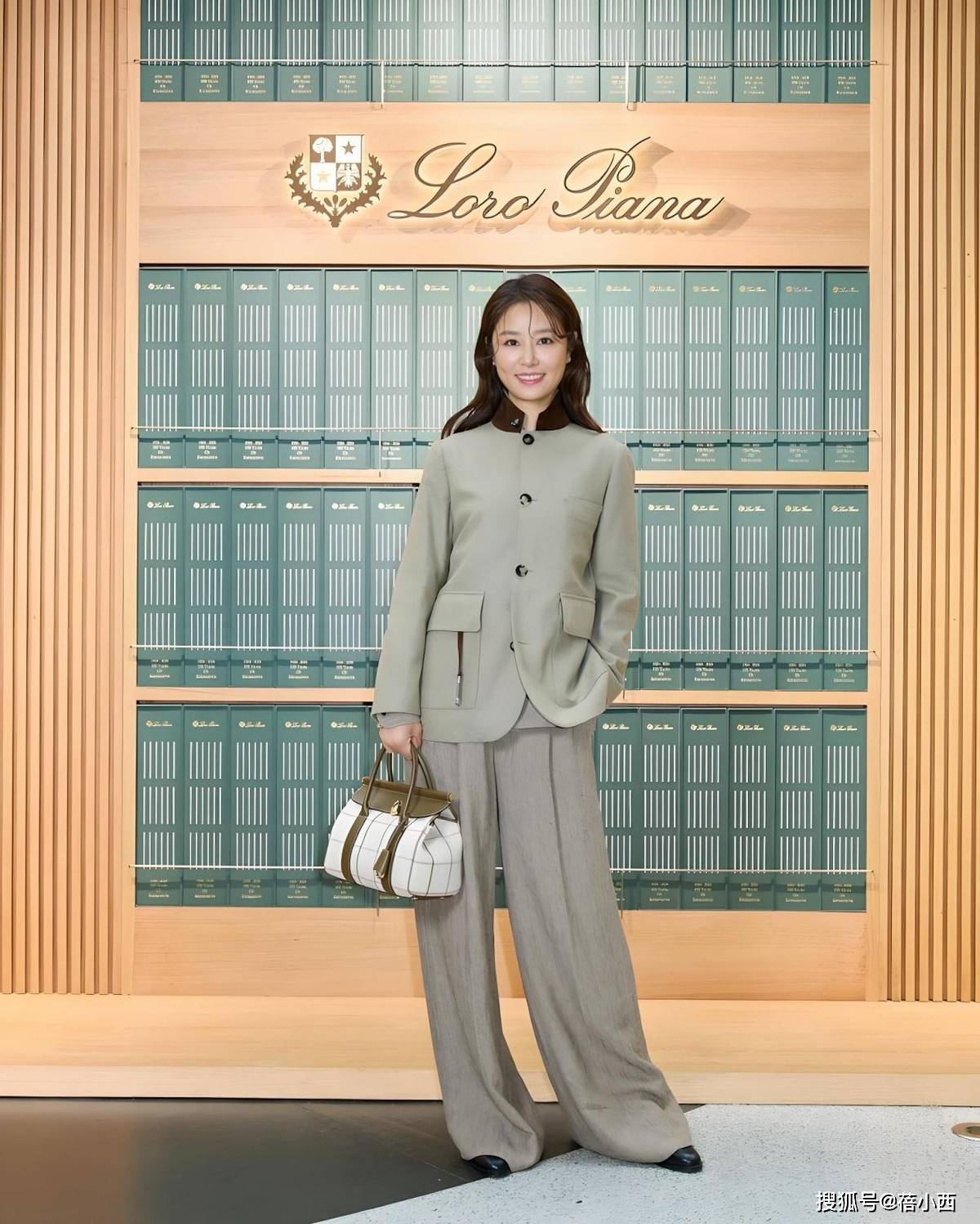 林心如这一身西装套装的搭配很干练,上半身看着就是件普通西装,但穿起来一点不板正,不是那种硬挺的通勤款,版型松松的,肩膀也没垫肩,但穿起来又不会垮,支棱得刚好。领口拼接深棕边是唯一的亮点,一下就把颜色分出层次了,看着特清爽,对于成熟女性来说非常的友好。