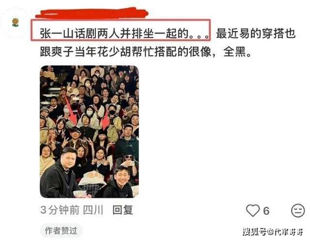 11 月 14 日,张一山主演的话剧《一地鸡毛》首演,一场艺术盛宴却意外成为胡彦斌与易梦玲恋情的又一见证地。现场的大合照中,两人并排而坐,距离相近,虽然易梦玲包裹严实,但从身形与穿搭风格等细节,仍被眼尖的网友认出。随后,两人还同步在社交平台为张一山宣传话剧,言语间的默契,让人不禁猜测他们私下的关系早已不一般。