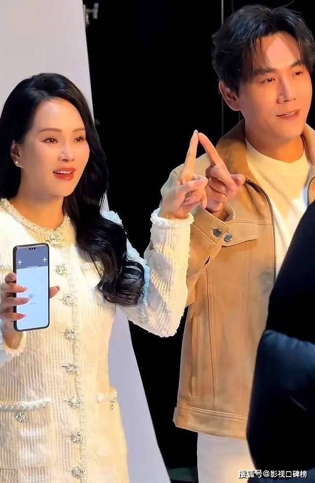 原来伊能静是与老公秦昊在一起录制节目,她开心的对着镜头唱歌呢~