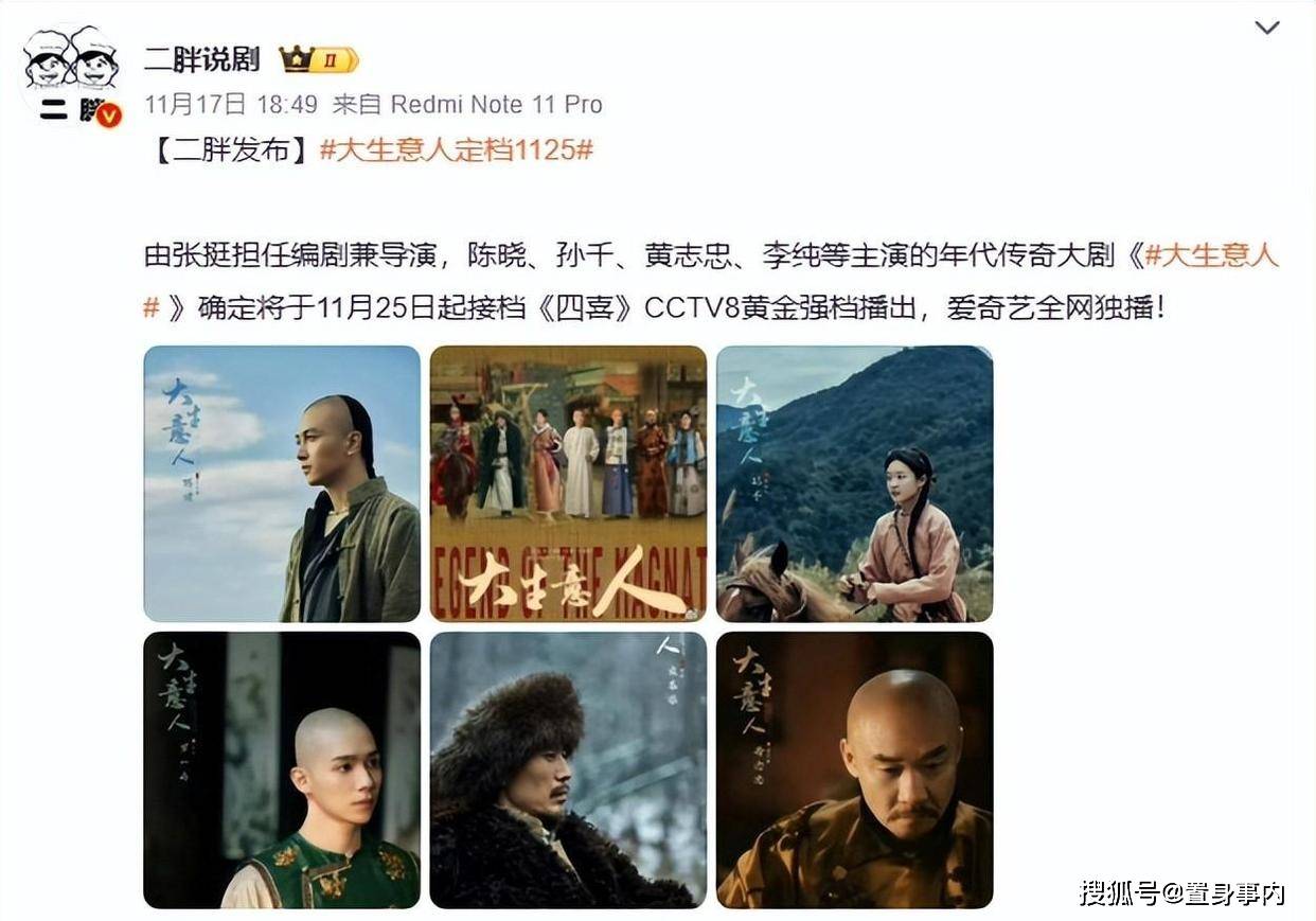 虽然《大生意人》还没有 确定播出时间,不过从各种传闻来看,大概是打算在11月25号上线吧。