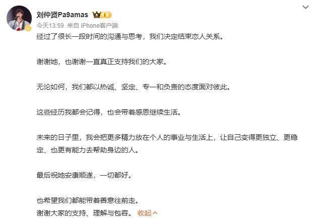 2025年11月20日,网红情侣朱朱(朱荷霖)与小桃(刘仲贤)通过社交媒体发布联合声明,宣布结束为期六个月的恋情。这对因综艺《友间合租屋》结缘的“仲夏雨霖”CP,以“无法调和的分歧”为由选择和平分开,全程未公开矛盾细节,却因声明中克制的措辞与体面的态度引发热议。这场看似平静的分手事件,实则撕开了当代情感关系与综艺工业交织下的复杂真相。