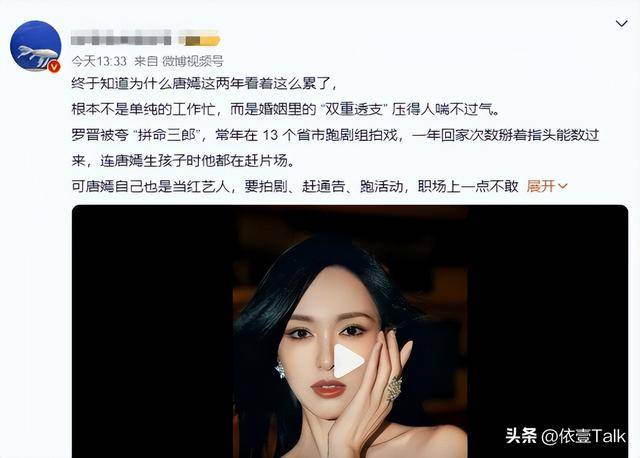 之前网友扒出“唐嫣独自带娃”“唐嫣父母帮着带孙辈” 的细节,就瞎猜“肯定是离婚了”“罗晋不管孩子”。