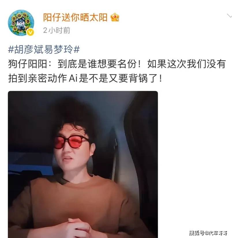 他还质疑恋情曝光的 “主动性”:“胡彦斌一直对恋情讳莫如深,这次公开完全是‘被实锤后被迫承认’—— 如果不是视频流出发酵,他大概率还会继续隐瞒。” 此外,阳阳还晒出拍摄花絮,显示视频拍摄角度专业、画面稳定,并非路人随手拍摄,间接印证 “女方或第三方刻意推动曝光” 的猜测。