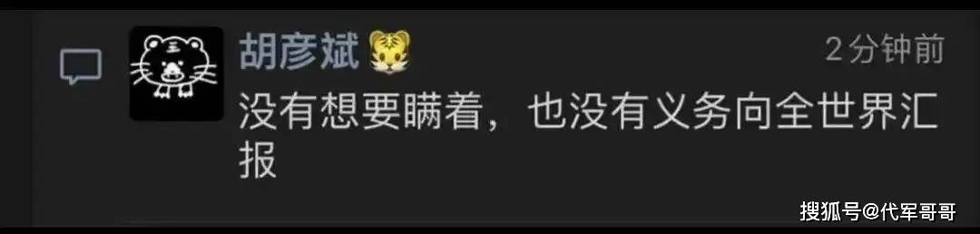 11 月 22 日凌晨,胡彦斌在粉丝专属微信群及个人朋友圈同步发文回应争议,内容呈现明显的矛盾感:一方面表示 “感情是私事,没有想要瞒着,但也没有义务向全世界汇报每一个细节”,另一方面又向粉丝道歉 “这段时间让你们承受了很多不必要的攻击,对不起”。