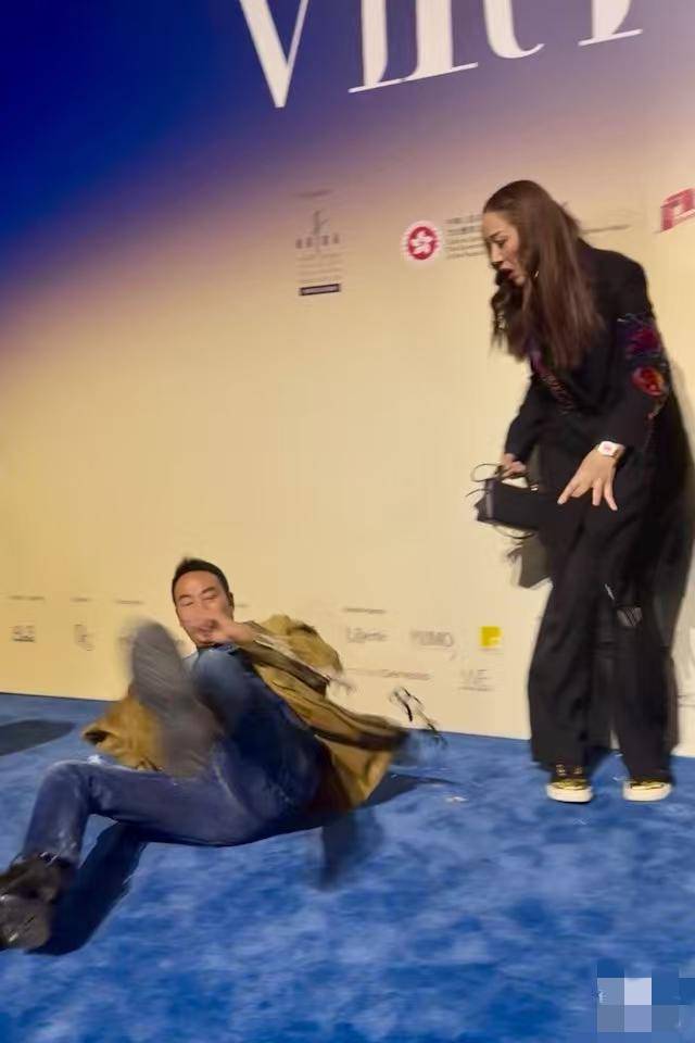 上台时候却因地毯太滑而跌倒,已经70岁的他倒地让在场的人吓了一跳。工作人员更是立马上前查看情况,她太太琦琦更是满脸担心。不过,经常健身的任达华却没有因此退场,他跌倒后立马一个凌空转身,自己站起来。