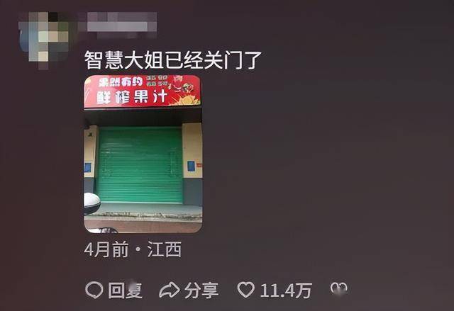 即使门店倒闭,仍有粉丝前往“吊唁”。好比智慧大姐的鲜榨果汁店在关店后的人气比开店那会儿高,不少人借此调侃:“人来了,你又把店关了”,然而点赞打卡的人气终究无法转化为营业金额......