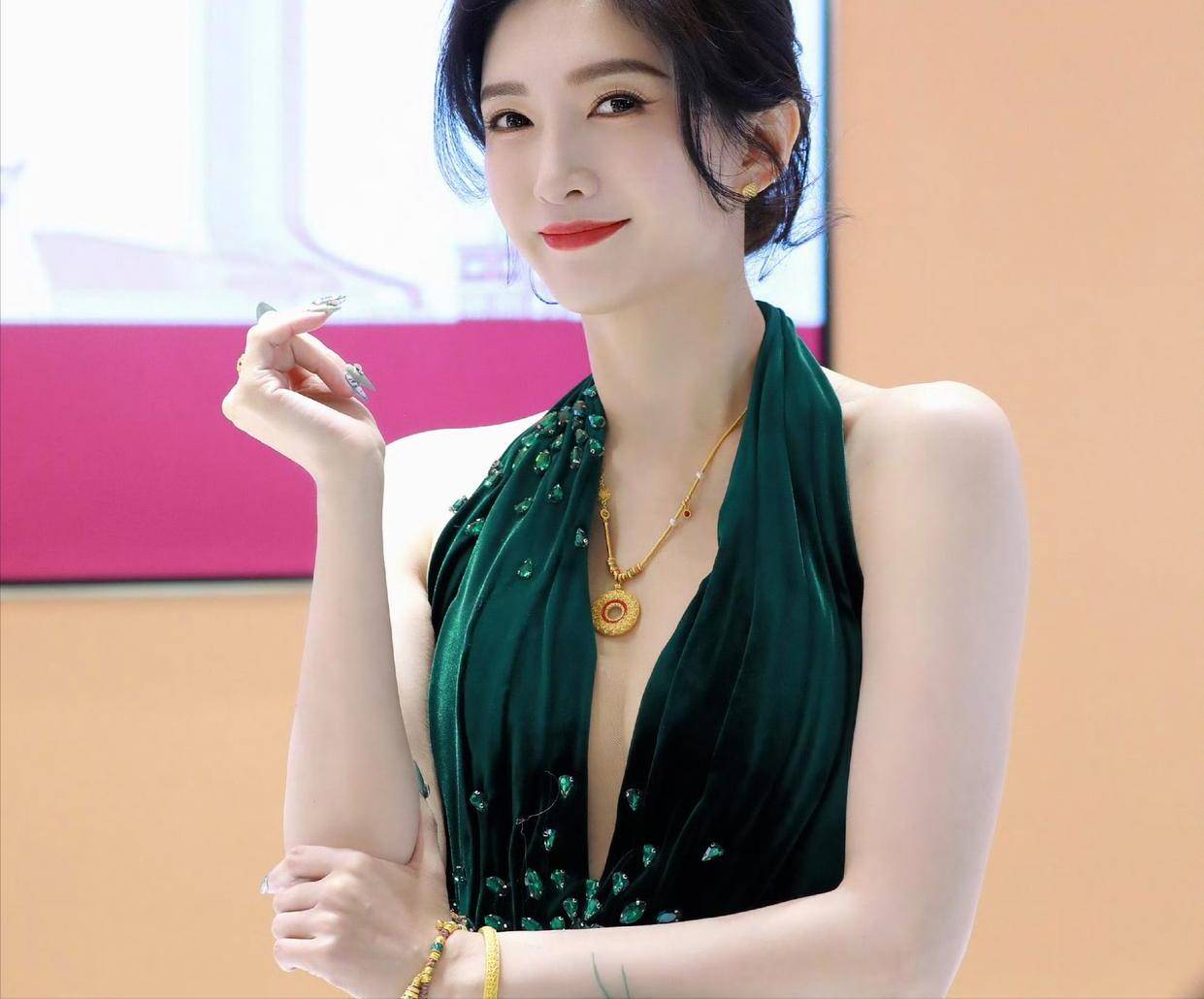 黑色西装和包臀裙,再加上黑丝和黑高跟鞋,不说是明星的话,还以为是哪个网红误入代言现场。